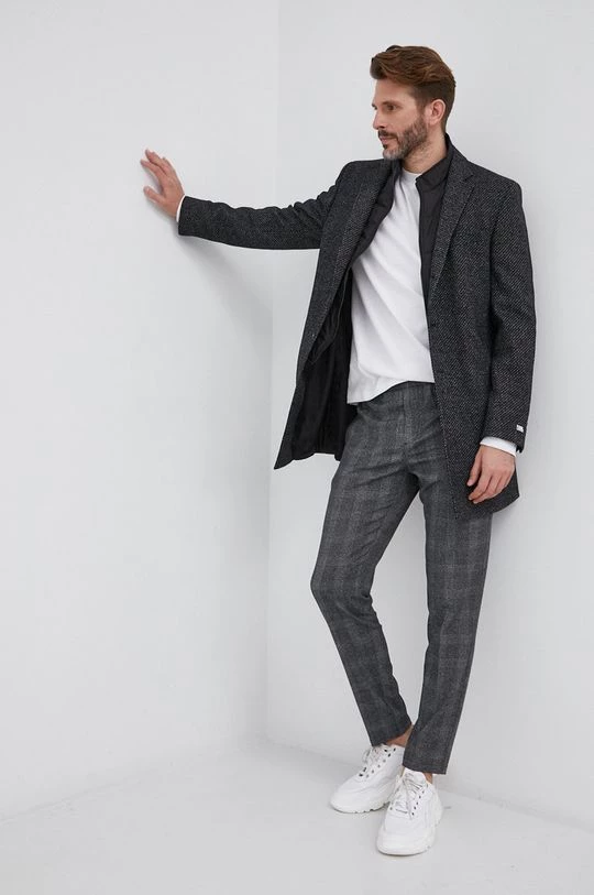Παλτό από τη συλλογή Karl Lagerfeld. Χωρίς εσωτερική επένδυση μοντέλο από ύφασμα με μοτίβο.