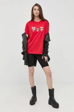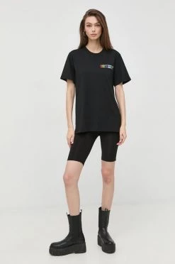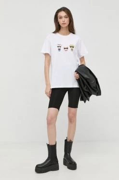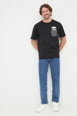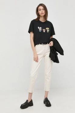 Κοντομάνικο Βαμβακερό μπλουζάκι Karl Lagerfeld Lagerfeld X Cara Delevingne , χρώμα: μαύρο